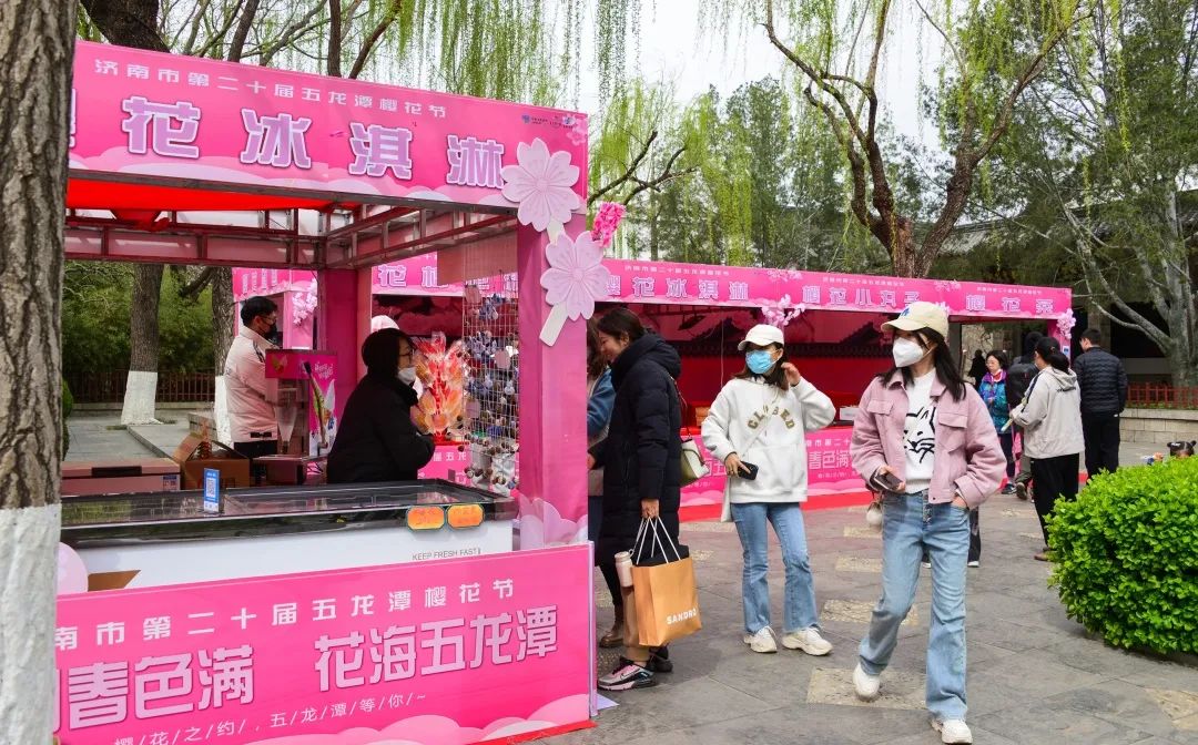 本屆櫻花節(jié)以“櫻園春色滿 花海五龍?zhí)?rdquo;為主題,由濟南文旅集團主辦,濟南天下第一泉風景區(qū)服務中心和濟南文旅集團旅游開發(fā)有限公司承辦。櫻花節(jié)期間,五龍?zhí)豆珗@內圍繞櫻花主題,開展系列活動,讓游客既能觀賞到美麗的櫻花,沉浸式體驗櫻花文化,又能品嘗獨特的櫻花美食,感受早春節(jié)日氣氛。