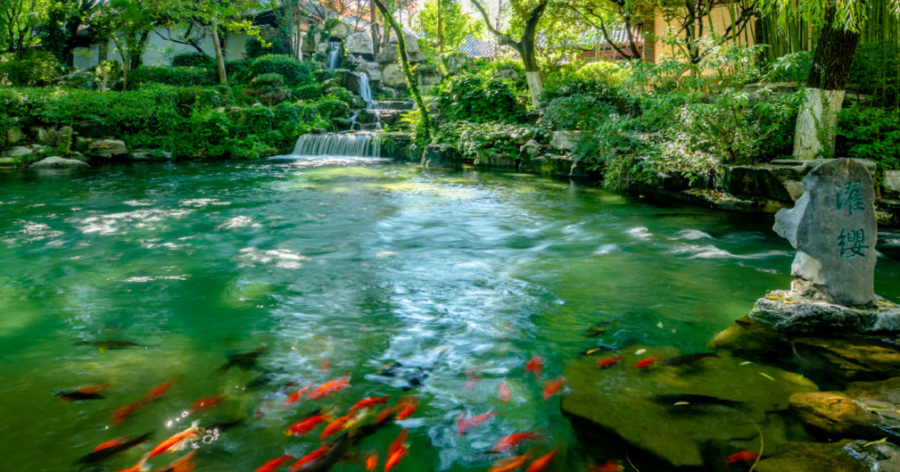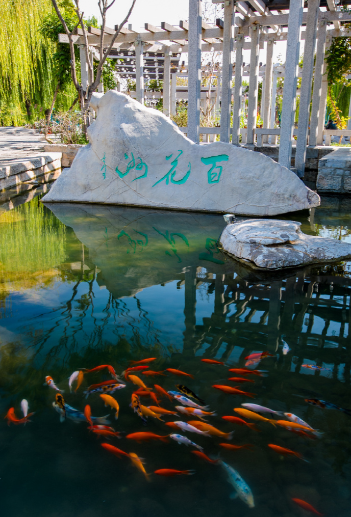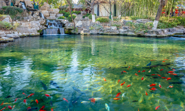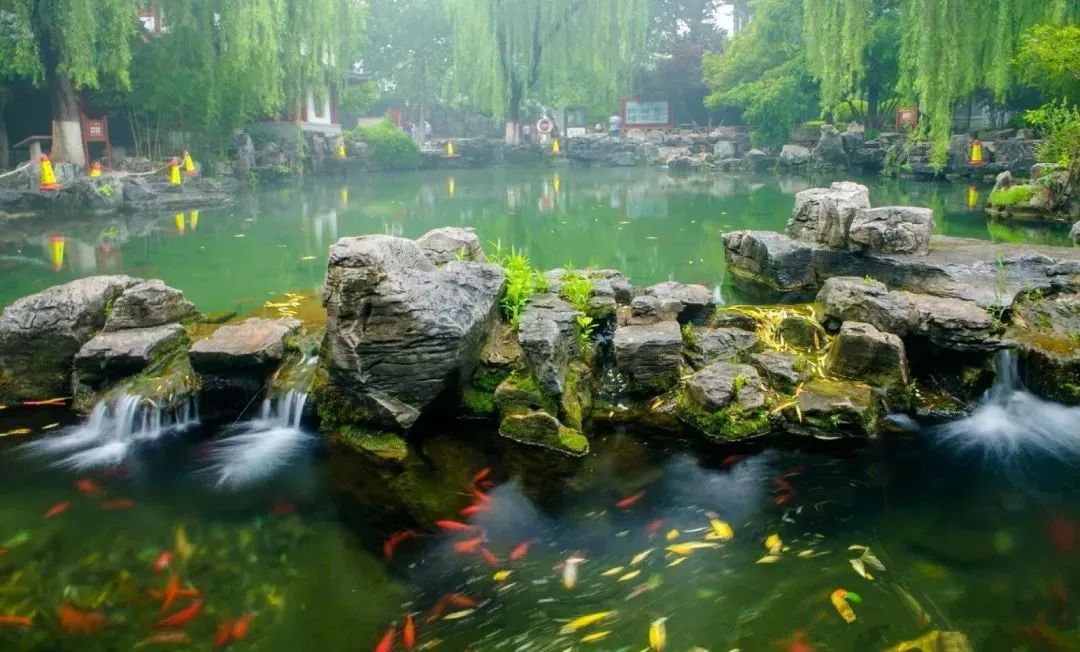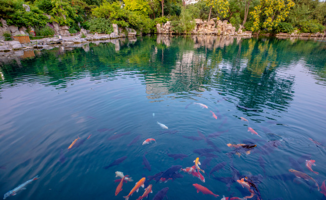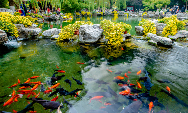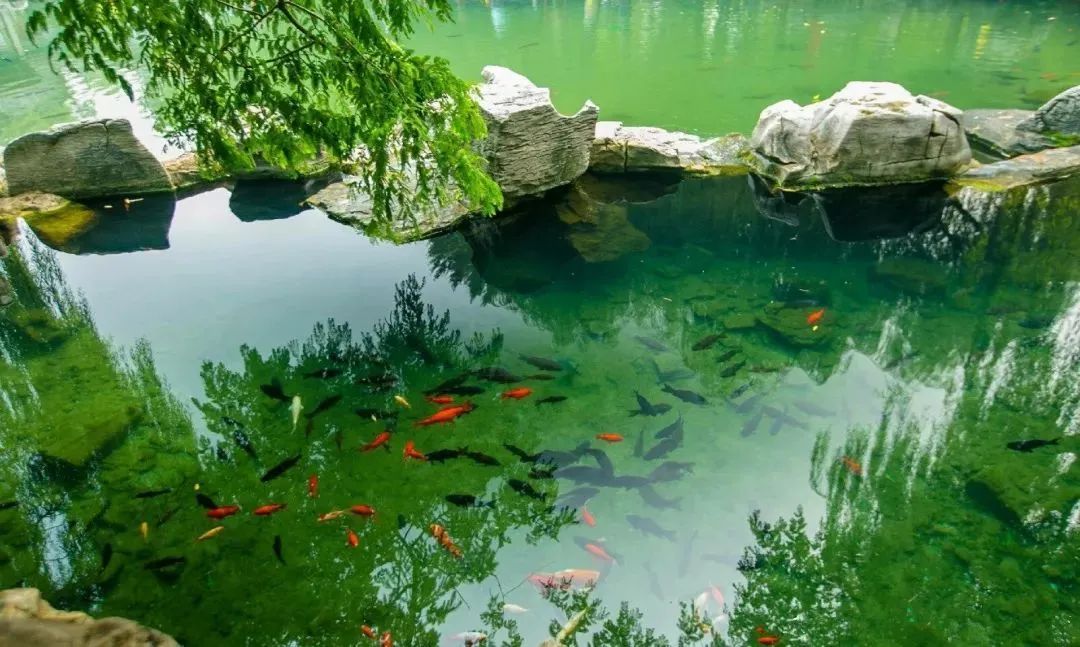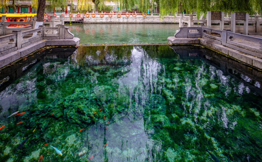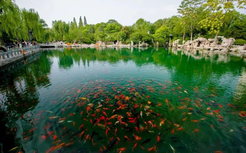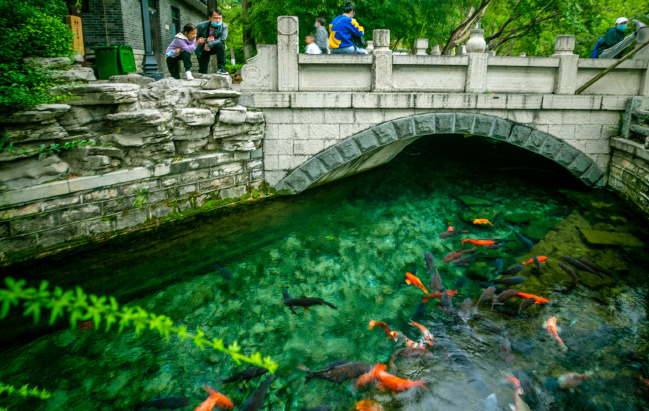 珍珠泉向來有“一泓映綺疏”美名,連名字都取自珍貴的寶藏。泉水清澈見底,無數(shù)魚兒在水底游來游去。在這里,占據(jù)視線最多的便是在水中嬉戲的錦鯉,這些精靈上下翻飛,襯得泉水歡騰靈動。這樣和諧的景象特別又新鮮,格外惹人貪看。