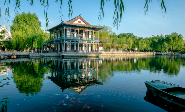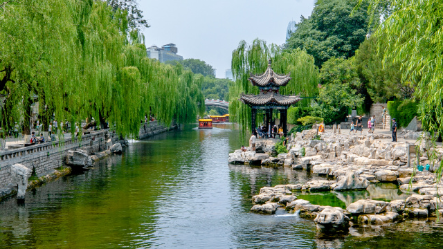 濟南護城河全長6.9公里,串起了大明湖、趵突泉、黑虎泉、五龍?zhí)?,仿佛串起了一顆顆柔潤的珍珠,在這片沃土上閃閃發(fā)光。