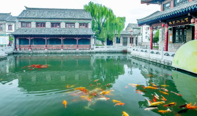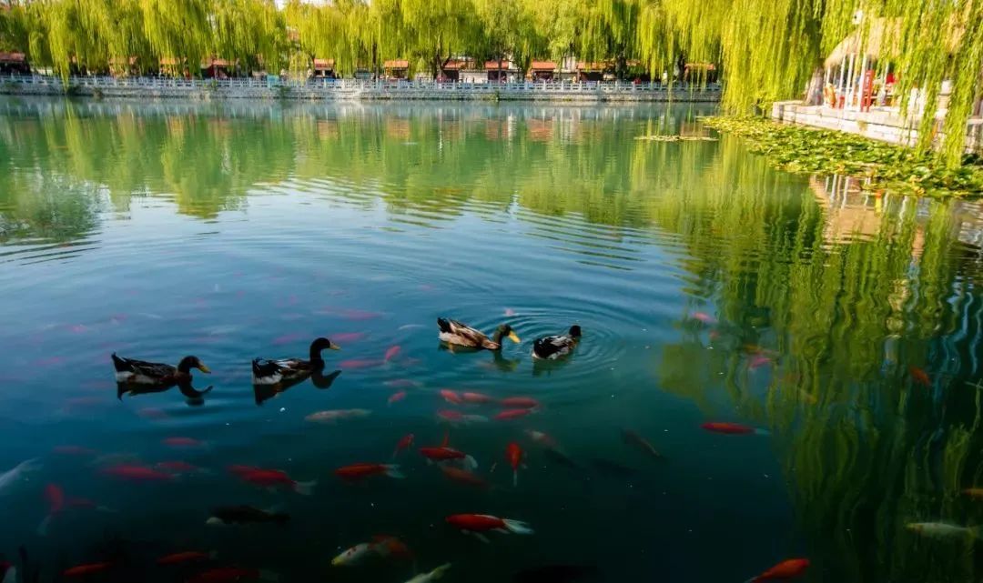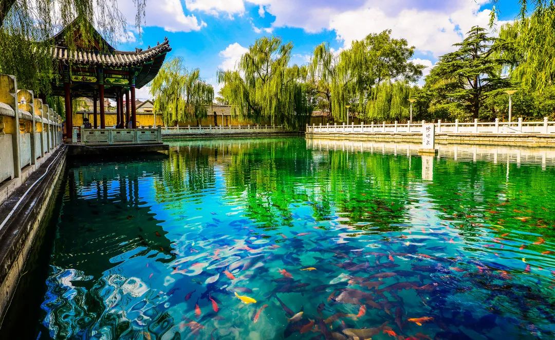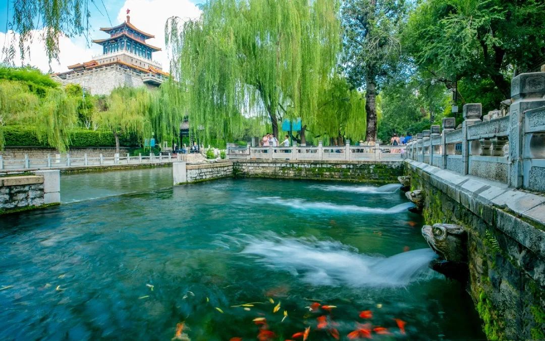 護城河邊還分布著白石泉、瑪瑙泉、琵琶泉、黑虎泉等泉水,構成了黑虎泉泉群。清澈見底的泉池里錦鯉戲水,煞是好看。