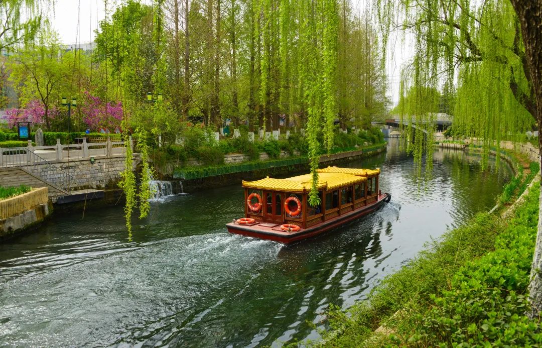 城中的護城河,與泉水相伴而生,清澈、靈秀,綠柳清波、風(fēng)雅無限,最能代表泉城特色,一水連百景,如一條玉帶環(huán)繞老城。來到黑虎泉邊,零距離接觸的泉水更是引得來人陣陣稱贊。