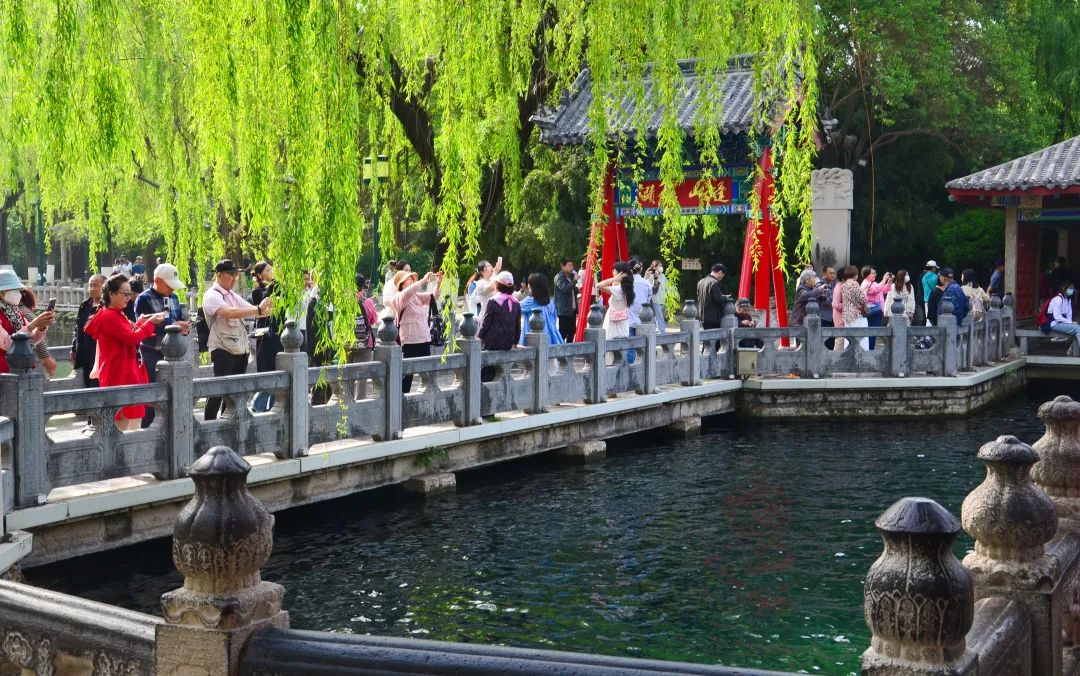 “不像是在北方,倒像是到了江南。”這是不少外地游客看到泉水后發(fā)出的感嘆。在趵突泉公園內(nèi),圍滿了賞魚觀水的游人,行走其間,耳邊不時傳來游客的聊天聲,分享著見到泉水后的感受。