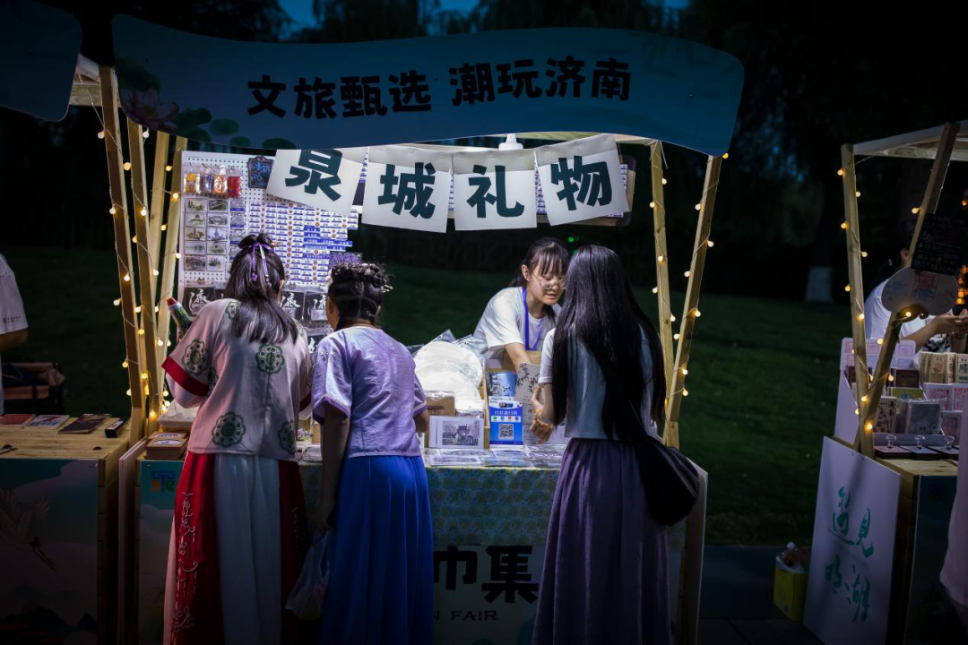 在大明湖超然樓廣場主游路,正在舉辦的“遇見明湖·超然市集”城市文創(chuàng)市集將持續(xù)至7月31日,工作日市集時間為17:00—21:30,雙休日市集時間為10:00—21:30。