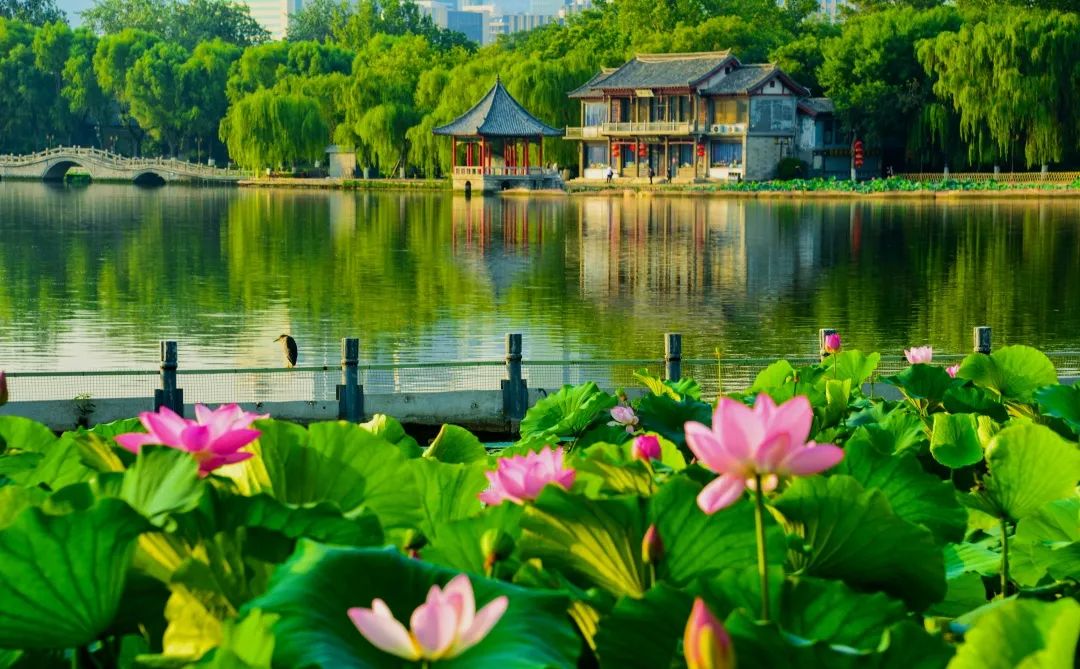 漫步于大明湖,一池荷花,半世清夢,帶著TA感受一下屬于夏日的詩情畫意。湖水清澈、風(fēng)光旖旎,亭臺(tái)樓閣、軒榭廊舫點(diǎn)綴其間,曲水亭橋、花石小路,更給大明湖增添了雅趣。