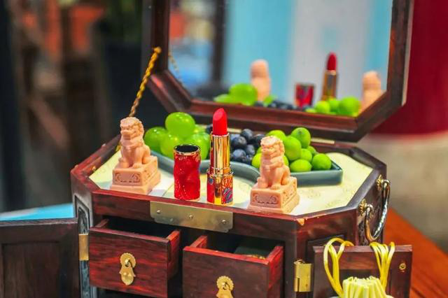 走進(jìn)古色古香的南豐戲樓,落座實(shí)木桌椅,一杯清泉茶飲在精致的茶杯中卷起“浪花”,或是濃郁醇香的拉花咖啡熱氣氤氳,流轉(zhuǎn)鼻翼間,點(diǎn)上最受喜愛的“雨荷梳妝匣”,三層的精致茶點(diǎn)以梳妝盒的形式呈現(xiàn),粉色的小獅子慕斯,威武又可愛。