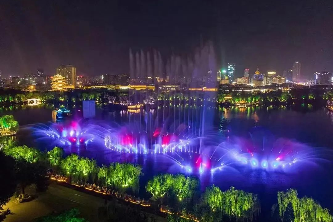 若是趕巧,還能在大明湖北岸觀一場“明湖秀”,湖水以四散的態(tài)勢向空中奔涌,配合著多彩的光譜,組成一幕幕水屏在夜色中綻放,驚艷了整個(gè)泉城的夜晚。