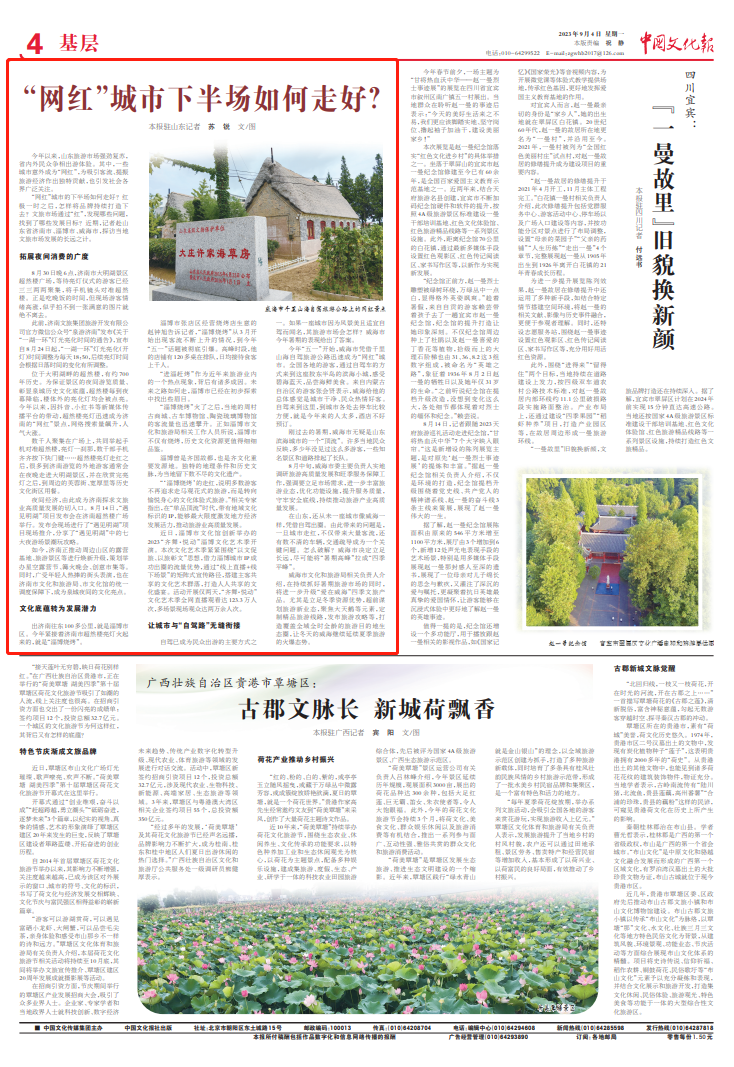 2023年9月4日,《中國文化報(bào)》刊文《“網(wǎng)紅”城市下半場如何走好?》,聚焦山東網(wǎng)紅城市,探訪當(dāng)?shù)匚穆檬袌霭l(fā)展的長遠(yuǎn)之計(jì),點(diǎn)贊濟(jì)南文旅集團(tuán)和“遇見明湖”項(xiàng)目。如下為稿件詳情——