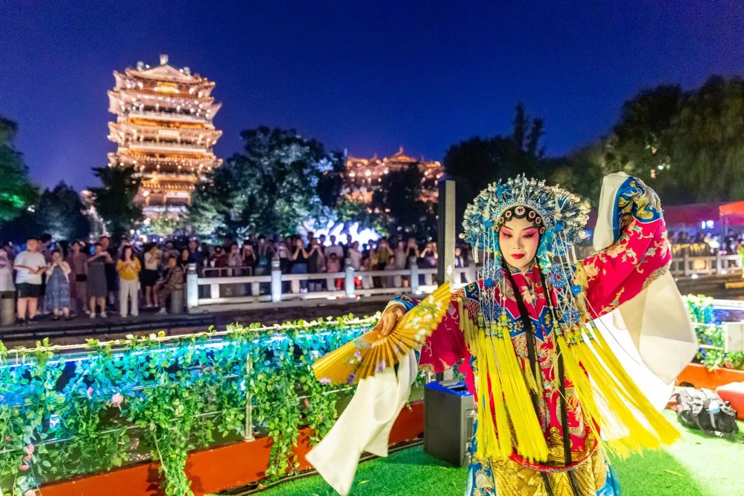 彈撥樂重奏《春江花月夜》、京歌《梨花頌》和《打登州》選段、戲曲小品《青城山下》、呂劇傳統(tǒng)劇目《逼婚記》……在超然樓前的廣場上,新潮快閃活動陸續(xù)上演,引爆線上線下“雙流量”。