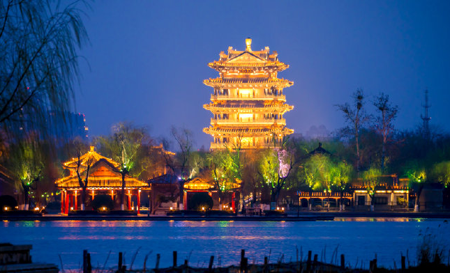 打卡濟(jì)南超然樓傍晚時(shí)分的亮燈