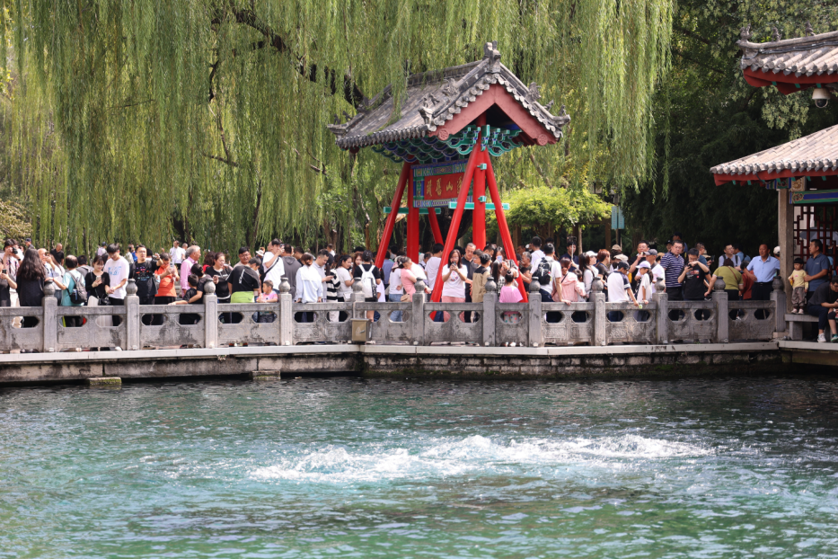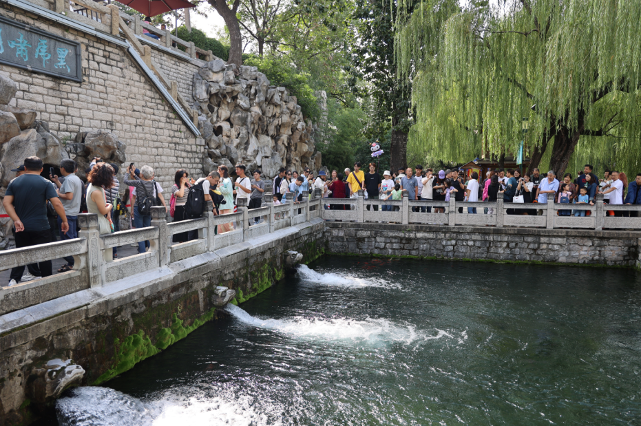今年恰逢“天下第一泉”趵突泉等重點(diǎn)泉群實(shí)現(xiàn)持續(xù)噴涌20周年。這個(gè)超級(jí)黃金周,天下第一泉風(fēng)景區(qū)自然成了游客蜂擁而至的好去處。“泉源上奮、水涌若輪”的盛景讓市民游客深感不虛此行。“月牙飛瀑”景觀持續(xù),“黑虎嘯月”氣勢(shì)磅礴,濟(jì)南一眾名泉景觀愈發(fā)秀麗。