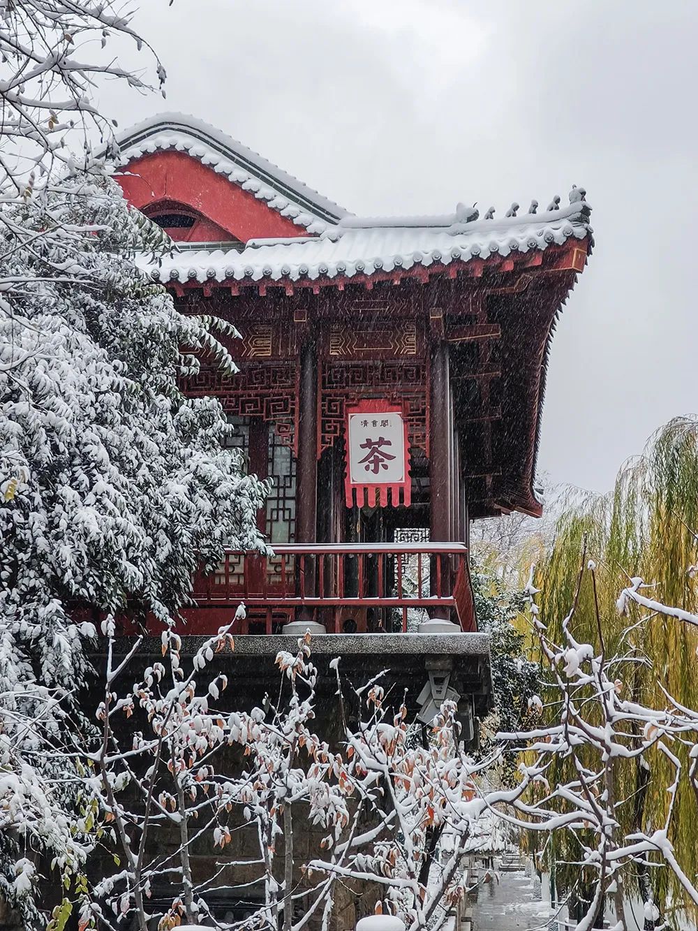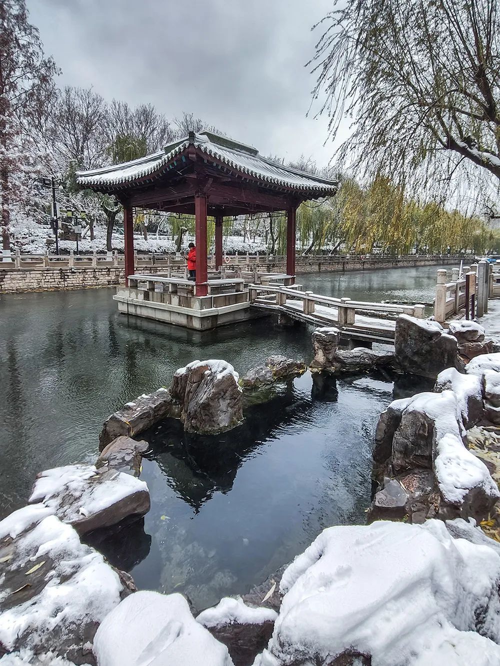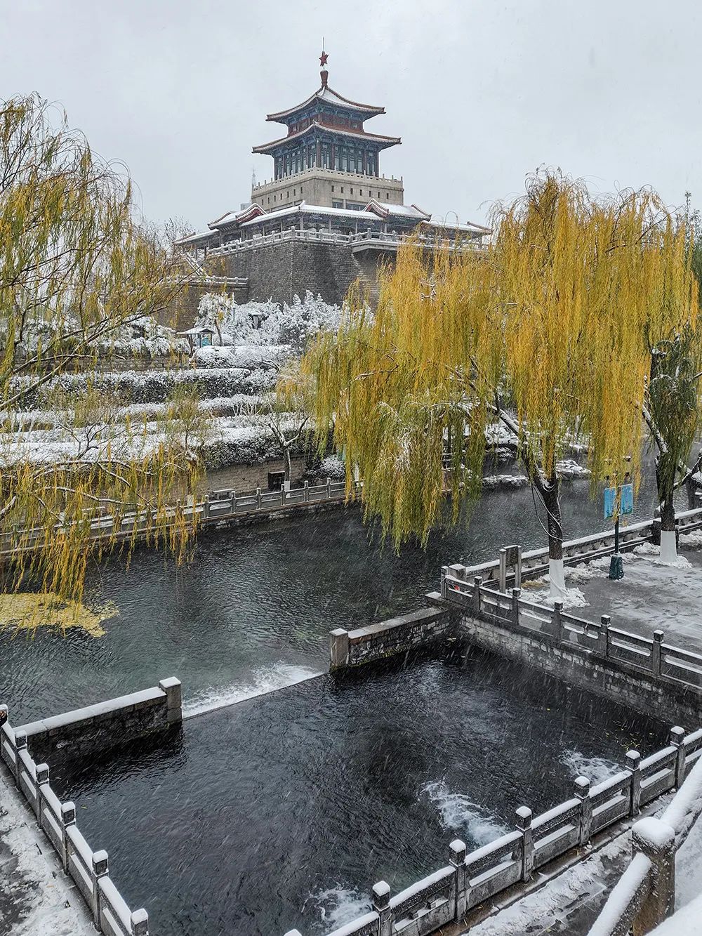 護(hù)城河畔銀裝素裹,如詩(shī)如畫