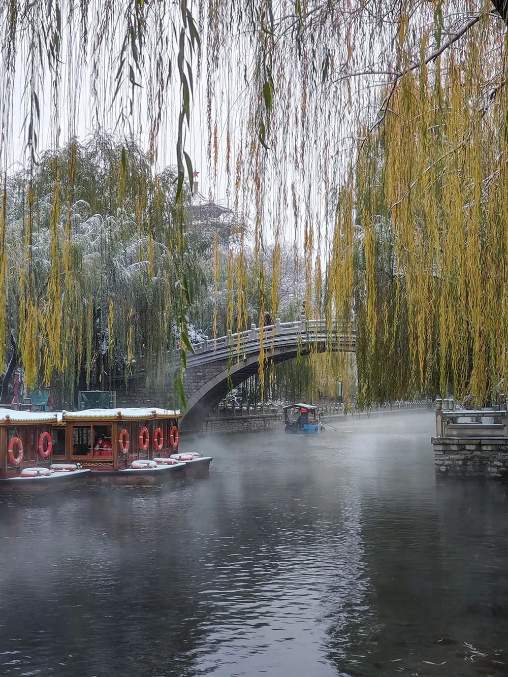 濟(jì)南護(hù)城河宛若一幅水墨畫