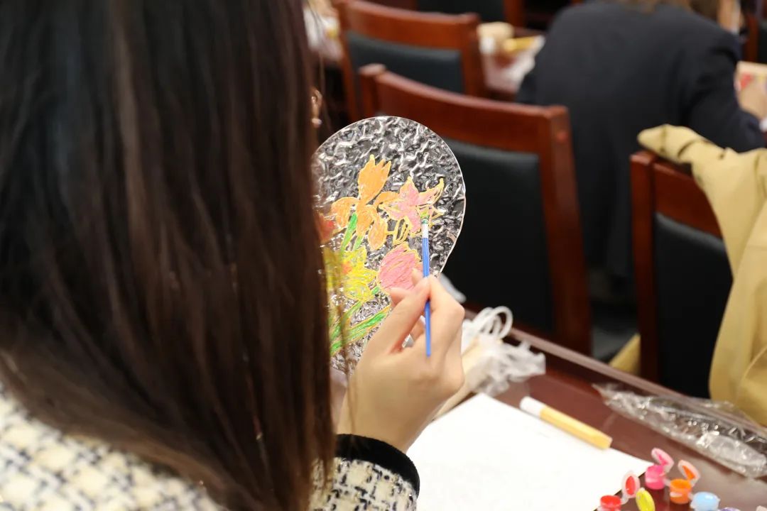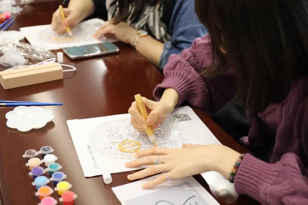 在老師的悉心指導下,女同胞們充分發(fā)揮自己的想象力和創(chuàng)造力,一邊認真地學著,動手描繪著自己心儀的圖案,一邊互相切磋,交流色彩搭配和造型要素,活動現(xiàn)場歡聲笑語、其樂融融。