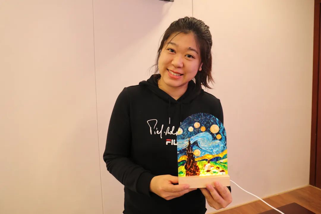 經(jīng)過1個多小時的學習實踐,一件件鮮艷多彩、美麗夢幻的琉璃小夜燈手工作品展現(xiàn)在大家眼前。