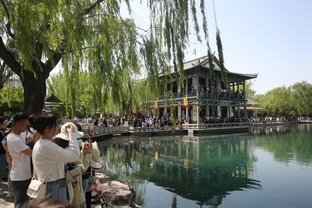 “五一”假期,天下第一泉景區(qū)內(nèi)游人如織,來自五湖四海的游客絡(luò)繹不絕,競相感受趵突泉的獨(dú)特魅力。大家紛紛拿起手中的手機(jī)和相機(jī)記錄“趵突騰空”,拍攝泉池中的網(wǎng)紅錦鯉,火爆的場景令人感受到濃濃的假日氣氛,無論在趵突泉三股水旁邊,黑虎嘯月的黑虎泉邊,還是觀錦鯉戲水的五龍?zhí)杜?hellip;…到處游人如織,人氣爆棚,大家在此賞泉拍照,感受大美泉城。
