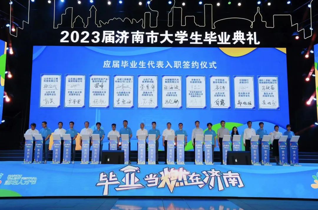 活動(dòng)現(xiàn)場(chǎng)播放了視頻短片《青春濟(jì)南 筑夢(mèng)同行》;畢業(yè)生代表分享了“青春的選擇”故事;科技青年、創(chuàng)業(yè)青年、技能青年、青年教師代表分享了“青春的答卷”故事;舉行了產(chǎn)學(xué)融合校企地合作項(xiàng)目、應(yīng)屆畢業(yè)生入職簽約;畢業(yè)生代表獲贈(zèng)“泉城青春禮包”。