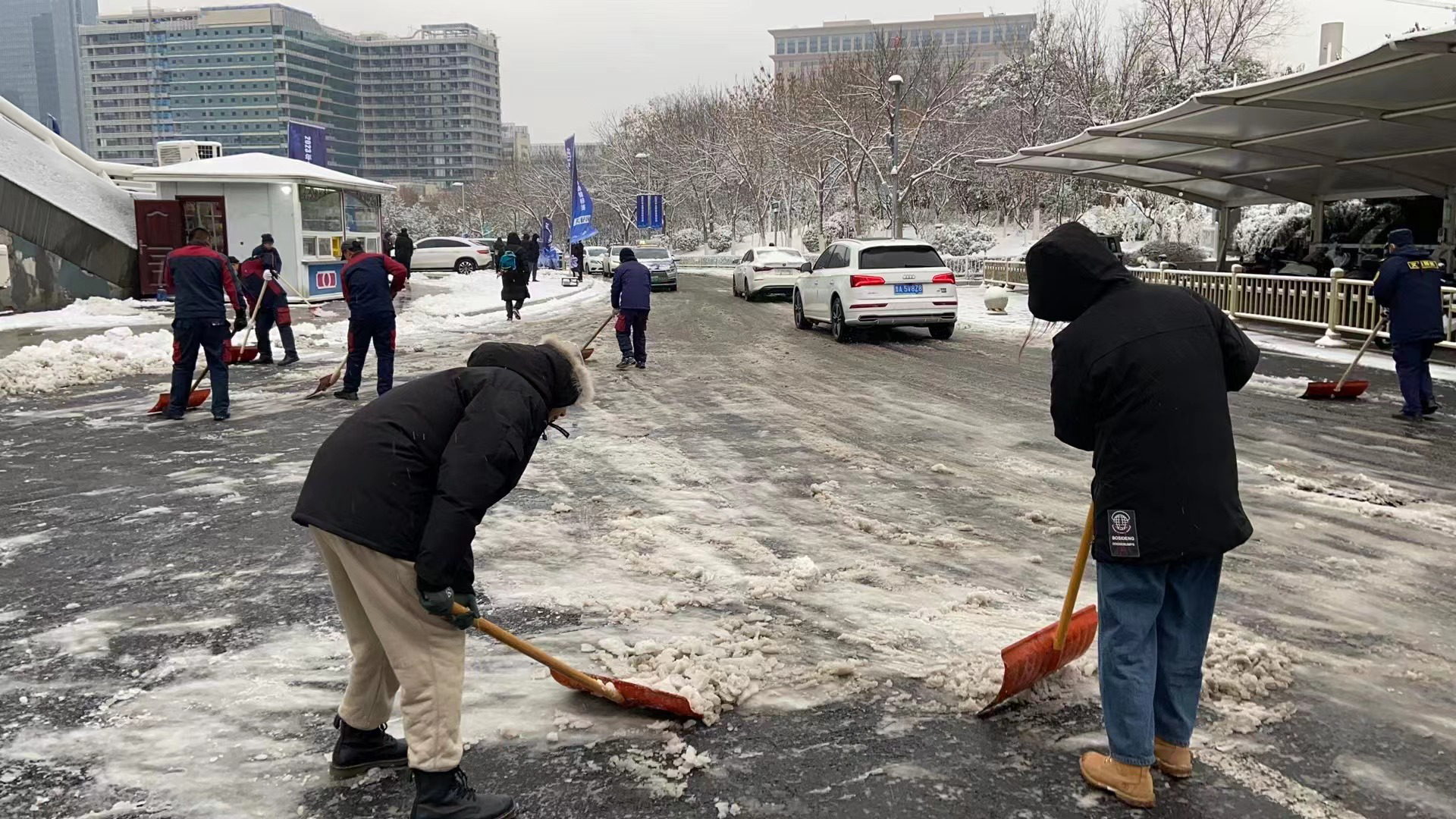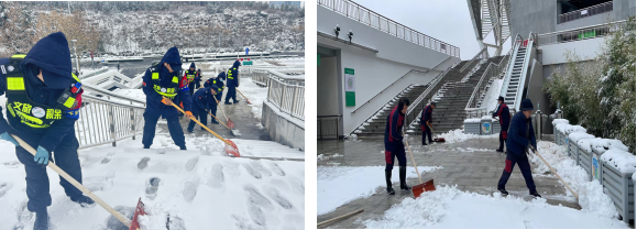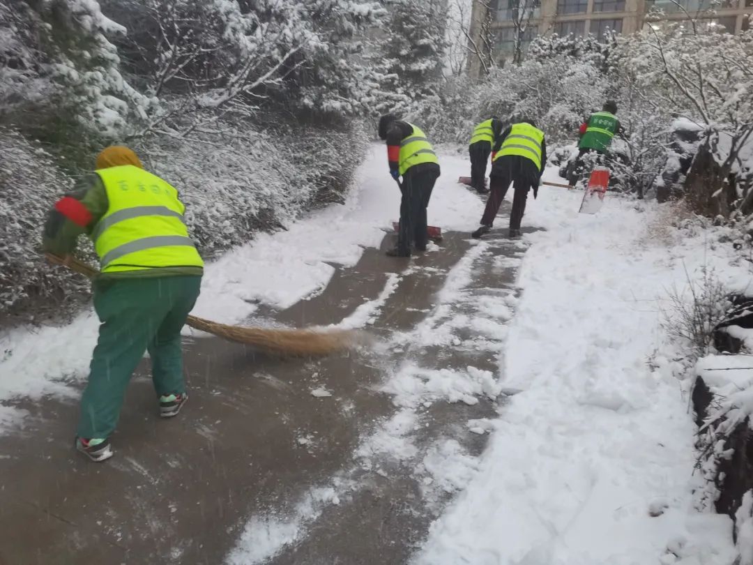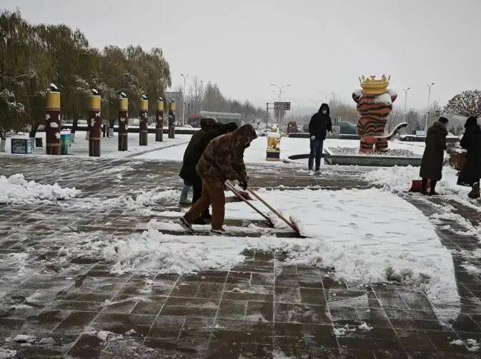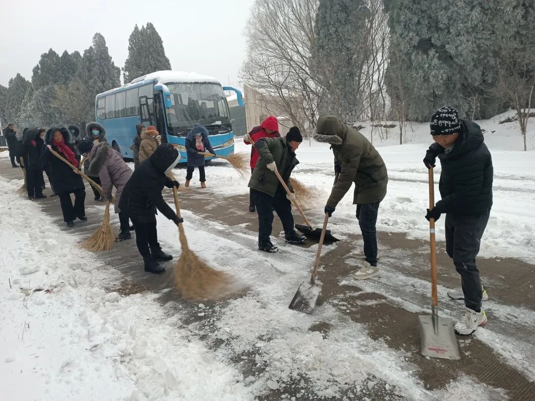 自濟(jì)南市氣象臺(tái)發(fā)布寒潮黃色預(yù)警后,文旅積余公司組織召開“掃雪除冰”專題會(huì)議,提前部署,做好掃雪物資儲(chǔ)備和應(yīng)急預(yù)案。降雪后,第一時(shí)間組建掃雪隊(duì)伍,迅速投入到掃雪工作中,確保項(xiàng)目園區(qū)、道路暢通,群眾出行安全。