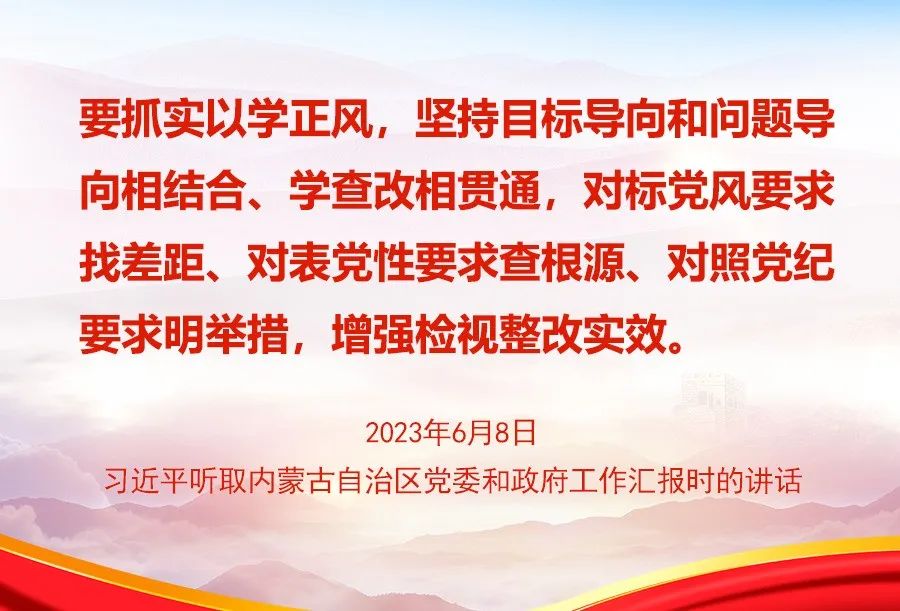 2023年6月,習近平在內蒙古考察時強調,通過集中教育推動全黨以自我革命精神解決黨風方面的突出問題,是一條重要歷史經驗。人民群眾看主題教育是否有成效,最直觀的感受是看黨風方面存在的問題是否得到解決、黨員干部作風是否有明顯進步。