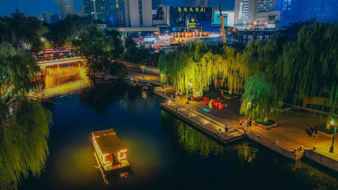 護(hù)城河沿岸親水平臺增設(shè)沉浸式場景演藝,以“一船游名士,一河憶千年”為主題,將曾鞏、李清照、秦瓊等名士佳話及泉城百姓依泉而居的生活場景,通過舞蹈、情景演繹等方式呈現(xiàn)出來,讓游客既能乘船飽覽泉城夜景,又能近距離感受這座由泉水孕育的城市有怎樣的人文故事、風(fēng)土人情。船上還配備專業(yè)的導(dǎo)游小姐姐提供全程講解,讓游客更直觀地了解濟(jì)南的自然風(fēng)光、歷史故事和人文風(fēng)貌。