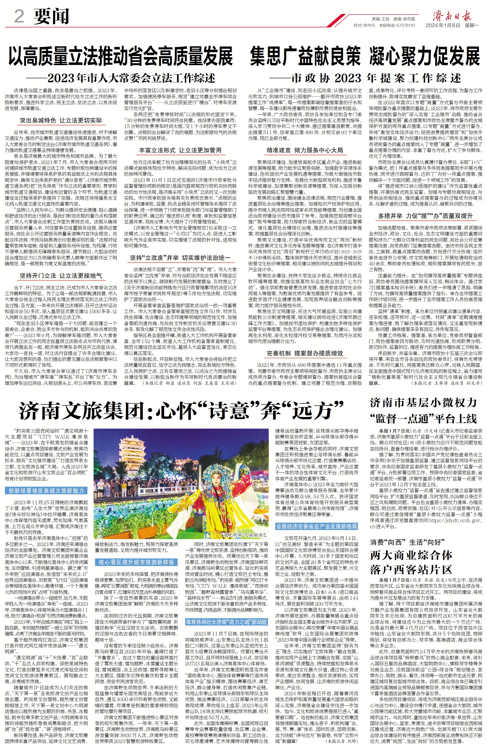 2024年1月8日,《濟(jì)南日報(bào)》要聞版刊發(fā)《濟(jì)南文旅集團(tuán):心懷“詩意”奔“遠(yuǎn)方”》的文章,采寫記者為劉燁。文章寫到,2023年,在千帆競發(fā)的強(qiáng)省會建設(shè)中,濟(jì)南文旅集團(tuán)探索模式創(chuàng)新,聚焦功能定位,以重點(diǎn)項(xiàng)目建設(shè)、文旅產(chǎn)業(yè)發(fā)展為抓手,服務(wù)“文化強(qiáng)市建設(shè)”“打造世界泉水之都、文化旅游名城”大局。如下為稿件詳情——