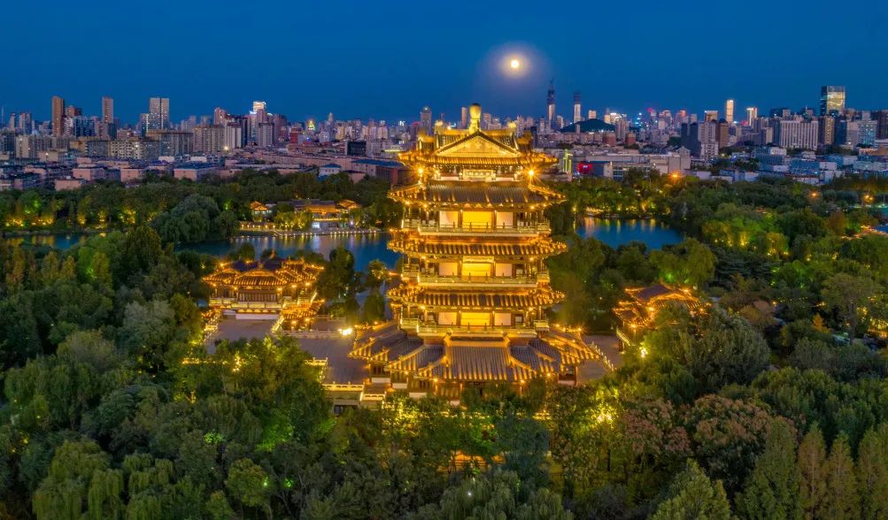“新的故事在初秋的夜晚,從遇見明湖開始。”8月14日傍晚,濟南大明湖畔的網(wǎng)紅超然樓在亮燈儀式上加入了炫酷的倒計時燈光秀,網(wǎng)紅濟南的夜游新品牌“遇見明湖”項目驚艷亮相,解鎖打開濟南秋天的“新方式”。項目發(fā)布會上,濟南文旅集團分享推薦官介紹,“遇見明湖”打造由“十”大場景、“百”企聯(lián)動、“千”名達人共同構(gòu)建的網(wǎng)紅城市夜游品牌。彈撥樂重奏《春江花月夜》、京歌《梨花頌》和《打登州》選段、戲曲小品《青城山下》、呂劇傳統(tǒng)劇目《逼婚記》……在超然樓前的廣場上,新潮快閃活動陸續(xù)上演,引爆線上線下“雙流量”。