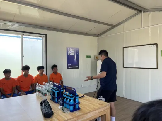 在球隊(duì)出征大連參加中國足協(xié)青少年足球錦標(biāo)賽(職業(yè)俱樂部U17組)前的最后一堂訓(xùn)練課上,崔鵬便親身示范,為隊(duì)員灌輸了職業(yè)球隊(duì)的這一理念。面對(duì)球員擺放不整齊的足球,他先是按照職業(yè)隊(duì)要求將足球平行排列好,并告訴球員以后在球場(chǎng)要按照這個(gè)標(biāo)準(zhǔn)擺放比賽訓(xùn)練用足球。“作為一名職業(yè)球員,來到青少年球隊(duì)做教練,我首先要讓他們經(jīng)歷一些我在職業(yè)隊(duì)經(jīng)歷過的事情。包括我們訓(xùn)練內(nèi)容要更職業(yè)化,細(xì)節(jié)也要更職業(yè)化,我需要讓他們明白在職業(yè)隊(duì)?wèi)?yīng)該怎么做,幫助他們更好地樹立發(fā)展目標(biāo)”崔鵬說道。