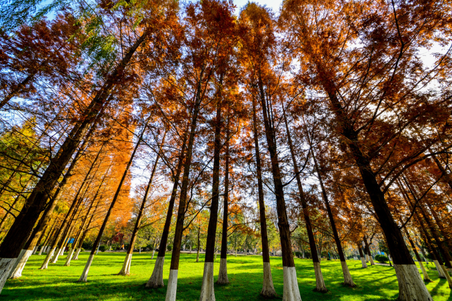 瑟瑟冬風(fēng)執(zhí)攜清寒,吹至濟(jì)南,在不少公園內(nèi),高大細(xì)密的水杉林漸漸完成翠綠、金黃、橘紅的漸變,給泉城濟(jì)南的風(fēng)景,添上了最濃墨重彩的一筆,你是否也想去看看?
