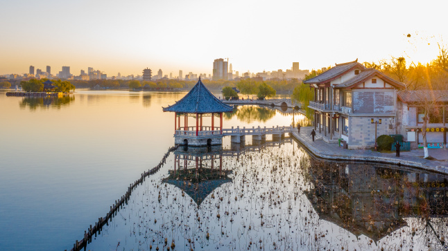 初冬,大明湖水面廣闊、湖光瀲滟,島嶼棋布、相映成趣,配上明湖游船下午茶,豈不美哉?