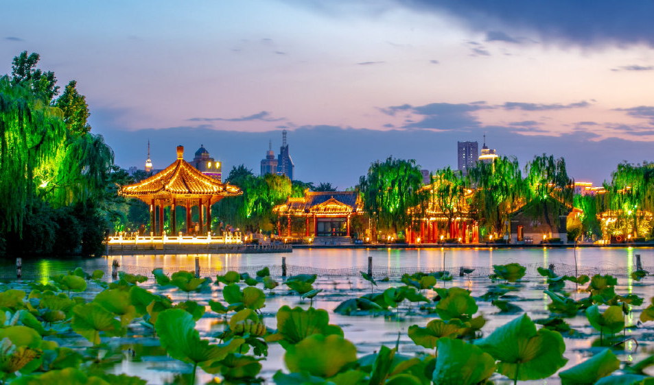 白天的大明湖,萬(wàn)般風(fēng)情盡在不言之中,但到了夜晚,太陽(yáng)落下柳梢的時(shí)候,大明湖才開(kāi)始展現(xiàn)它別有情趣的另一面!