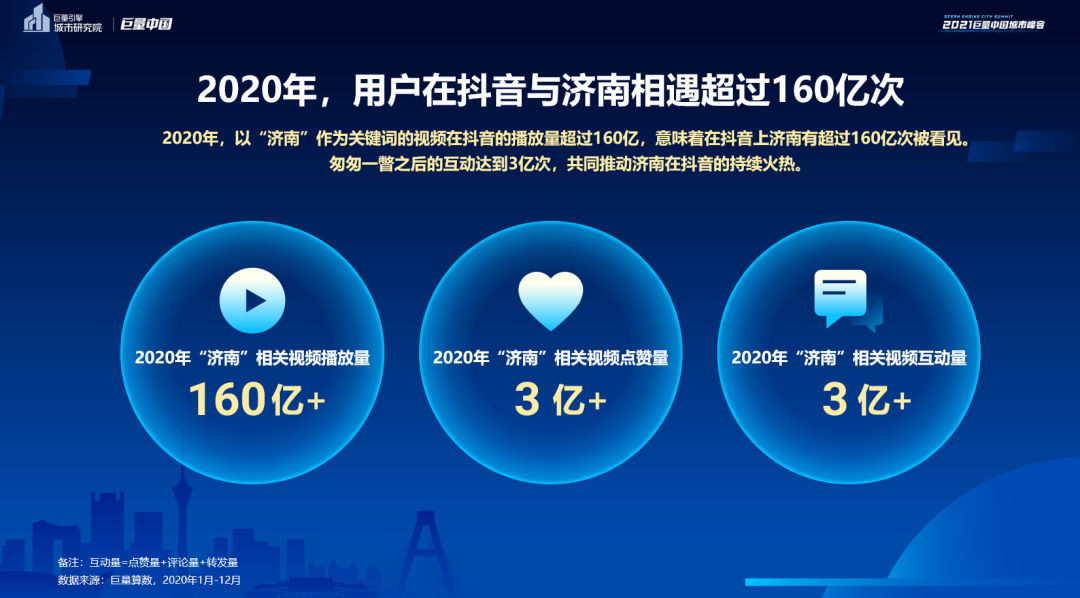 近些年,越來越多的城市正在通過抖音走紅。重慶、西安、大理、哈爾濱……當然,也少不了濟南。濟南,山東省省會、全國十五個副省級城市之一,因境內(nèi)泉水眾多,有“泉城”之稱,享有“四面荷花三面柳,一城山色半城湖”的美譽。作為國家歷史文化名城,首批中國優(yōu)秀旅游城市,濟南在抖音平臺十分火爆,伴隨著一首朗朗上口的《濟南濟南》背景音樂,濟南各大風景名勝、民俗文化通過抖音小視頻迅速傳播開來,很多網(wǎng)友都表示中了抖音的毒