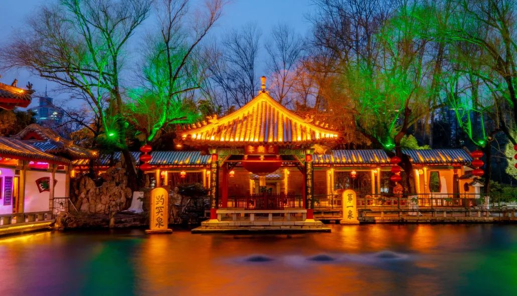 趵突泉古稱“濼”,《春秋》記載,魯桓公十八年(公元前694年)“公會齊侯于濼”,宋代曾鞏取其跳躍奔突的特點,定名為趵突泉。天下第一泉風景區(qū)自然風光秀美,人文底蘊深厚,以趵突泉為核心,泉流成河、再匯成湖,并與明府古城相依相生,泉、河、湖、城融為一體,集中展現(xiàn)了獨特的泉水水域風光,是泉城特色標志區(qū)的重要組成部分。常年舉辦春節(jié)文化廟會、迎春花燈會、金秋菊展、龍舟大賽、荷花藝術節(jié)、國際冬泳節(jié)等十余項大型傳統(tǒng)文化活動,體現(xiàn)了泉城濟南獨有的景觀和民俗文化特色。以趵突泉為代表的濟南泉水2009年被列入世界自然和文化雙遺產預備名錄;護城河泉水游覽景觀帶2011年11月被《求是》雜志推選為中國十大休閑勝地,2011年12月被住建部評為中國人居環(huán)境范例獎。