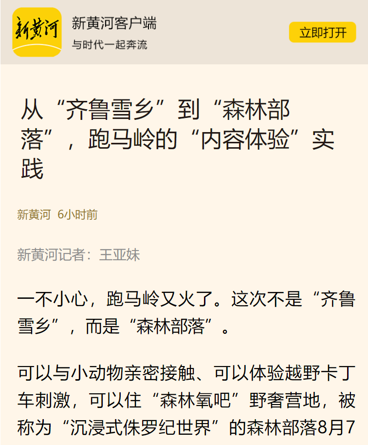 媒體聚焦|從“齊魯雪鄉(xiāng)”到“森林部落”,跑馬嶺的“內(nèi)容體驗”實踐