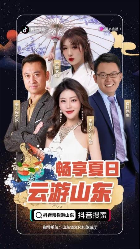 抖音聯(lián)合山東省文旅廳開展“抖音帶你游山東”系列直播活動(dòng),這個(gè)暑假抖音帶你領(lǐng)略山東美食、美景、風(fēng)土人情,更有知名抖音達(dá)人“有料先生”、“美人尖大叔”、“古城衣姐”、“主持人yoyo醬”帶你打卡網(wǎng)紅景點(diǎn)。7月21日 上午9點(diǎn)濟(jì)南文旅發(fā)展集團(tuán)——護(hù)城河游船直播品味濟(jì)南護(hù)城河的美,單單在河邊遠(yuǎn)觀近賞是不夠的。最妙的是乘船暢游,觀翩翩垂楊,聽潺潺泉韻。岸邊的垂柳和蘆葦將岸上的風(fēng)景隔開來,在畫舫中,聽導(dǎo)游講述