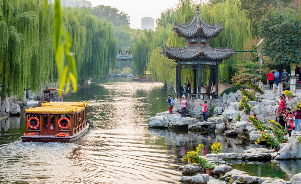想包攬濟南護城河的景色,那就不妨乘船游覽,置身船中,隨波前行。